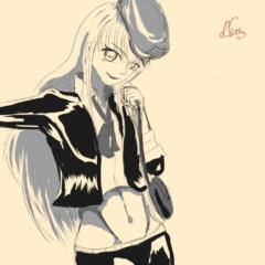 二次創作ですが元ネタのキャラクターとまた別のゲームのキャラクターの衣装などをかけあわせたものです。