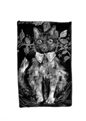 外国の絵本調の猫のイラスト/モノクロ