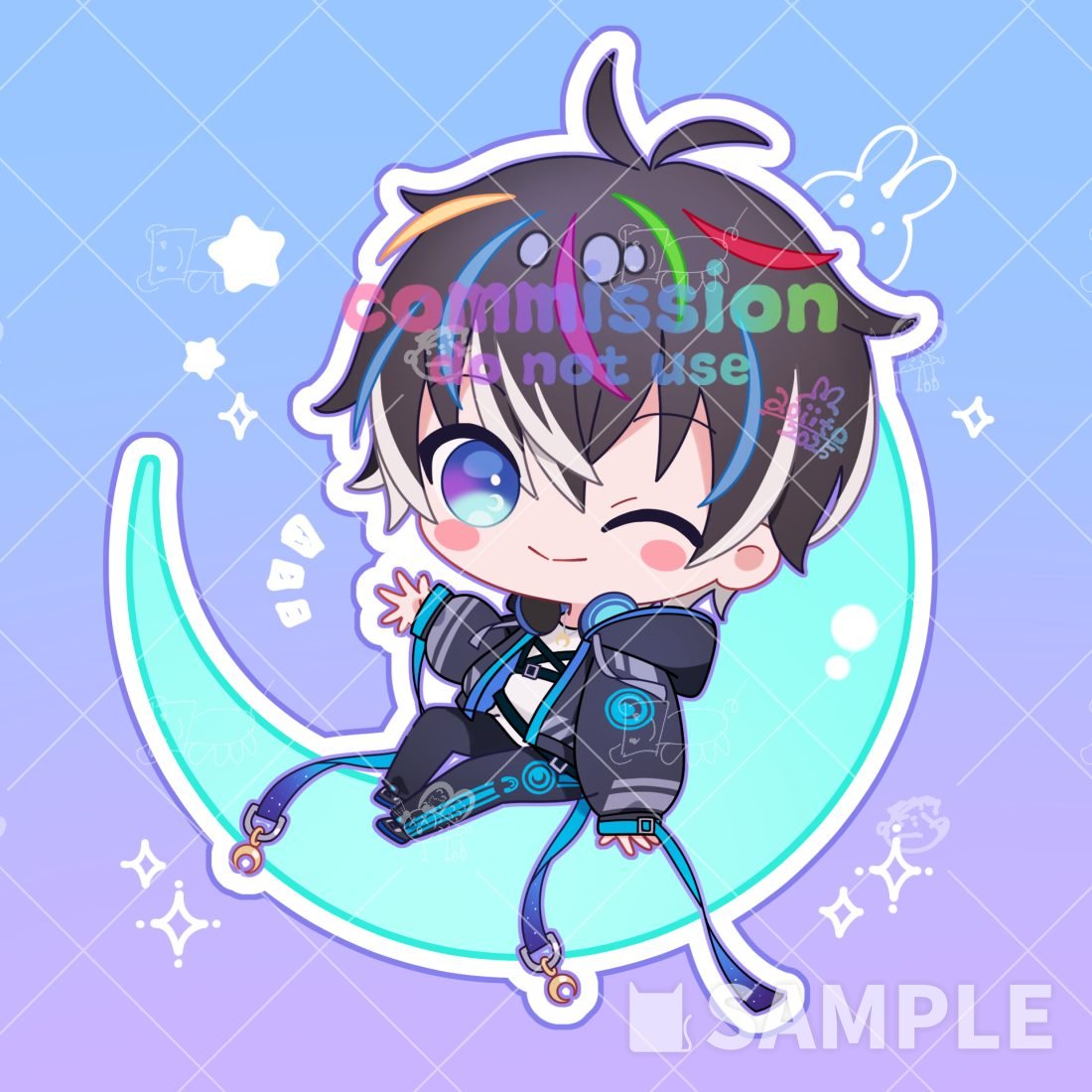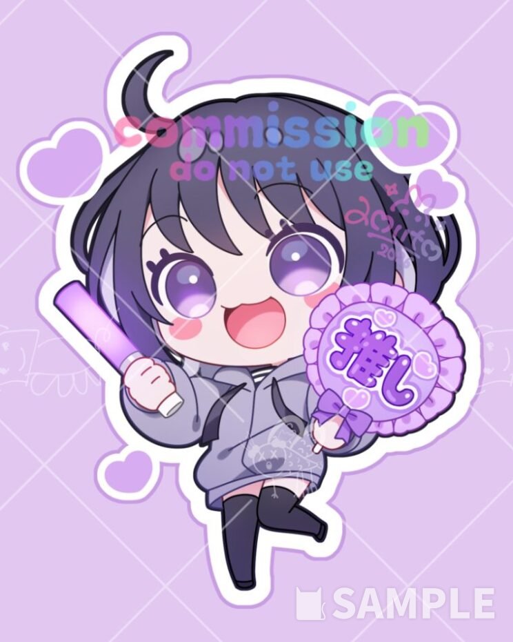通常のちびキャライラストと違い、目の描き方、彩色がシンプルになっております。
