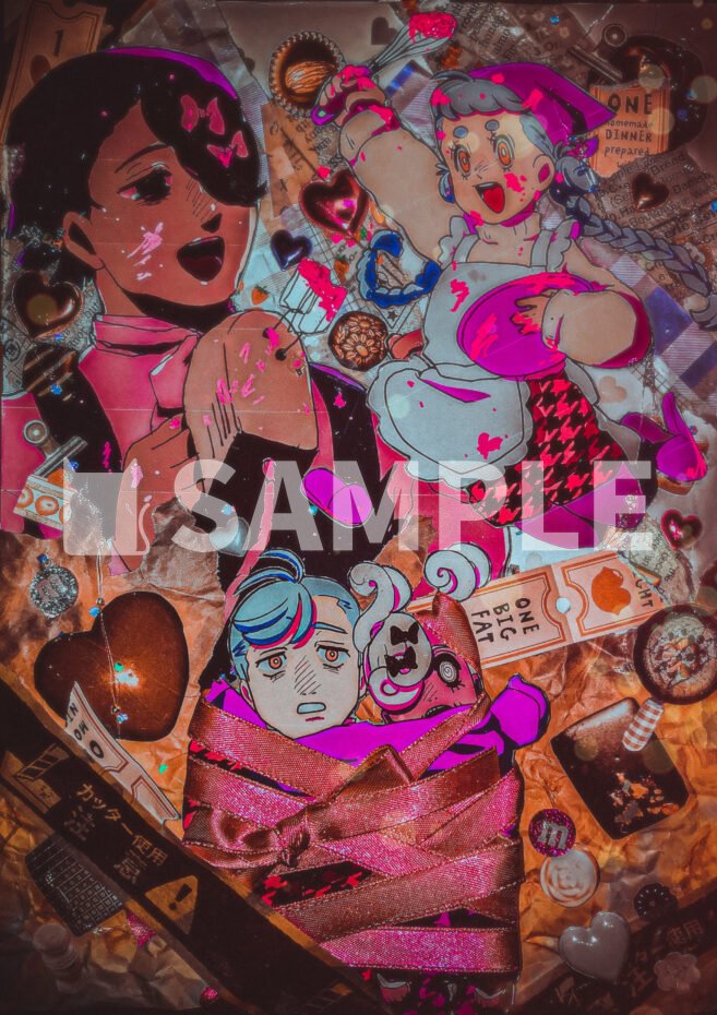 2枚目のようなコラージュを用いた作品についてもこちらで承ること可能ですが、材料代や工数のこともありますので、