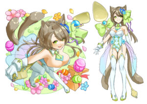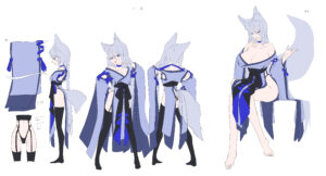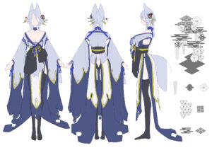 6~8頭身のキャラクターのデザイン、立ち絵、三面図やエフェクトや背景を入れた一枚絵等はvチューバ―モデル、ゲーム、歌ってみたのイラストとしてご利用いただけます。